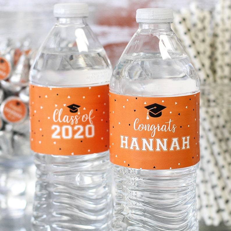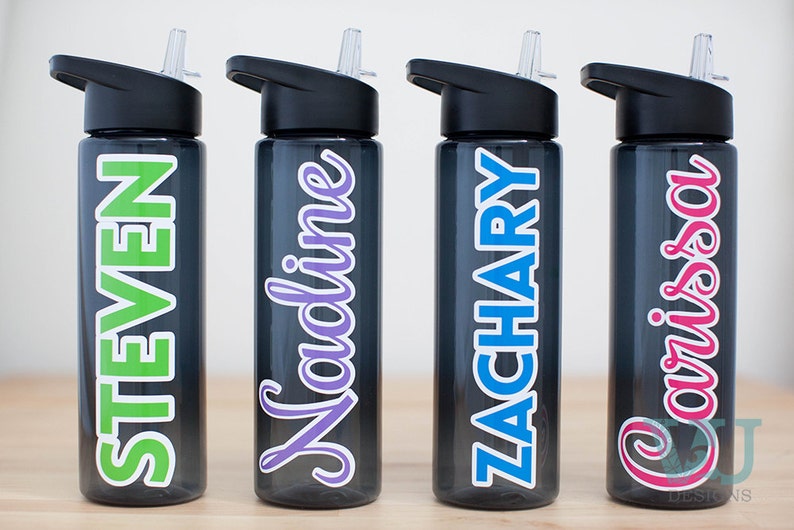 Pink and green water bottle labels
