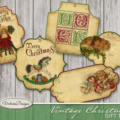 Vintage Children Christmas Gift Tags | Free Printable Here are the steps to create your own vintage gift tags with a glitter edge: Download and print tags using the link below. Cut out gift tags using scissors or a paper cutter. Put glue along the edges of each tag and coat it in glass glitter - see my vintage gift tag tutorial for the whole process. Punch hole using a mini hole punch, and add a ...