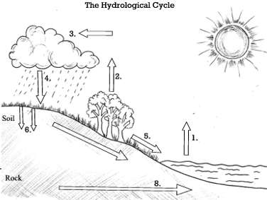 The Water Cycle - Enchanted Learning The Water Cycle. The Water Cycle (also known as the hydrologic cycle) is the journey water takes as it circulates from the land to the sky and back again.. The Sun's heat provides energy to evaporate water from the Earth's surface (oceans, lakes, etc.). Plants also lose water to the air (this is called transpiration).The water vapor eventually condenses, forming tiny droplets in clouds.