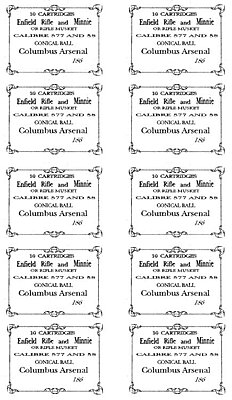 REPRODUCTION CARTRIDGE LABELS & WRAPPERS - rountreeptr.com that were used to package paper cartridges used during the Civil War. These products are ideal for use by reenactor, or for historical displays. Printed on an antique printing press with type faces available during the Civil War era, these labels and wrappers are accurate reproductions of the ones used to package cartridges used during the Civil War.